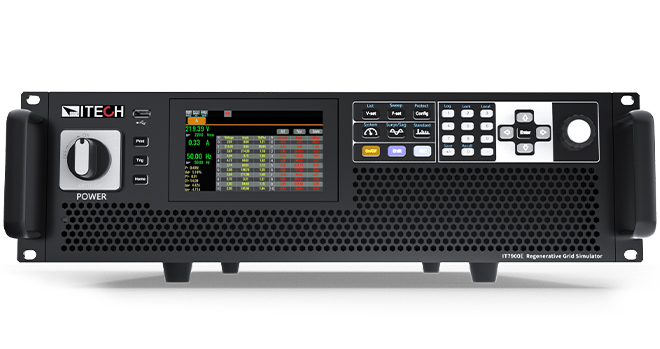 IT7900E系列代表了全新一代的可编程,全四象限电网模拟器,具备100%额定电流source和sink能力,并提供能量回馈功能。待测物在测试中所产生的能量可以完全经由IT7900E设备回收后厂内直接利用,而非以热能的形式消耗掉,为用户提供“绿色节能”的解决方案。适用于测试并网型且向电网注入能量的产品,例如并网/离网光伏逆变器的频率变化,电压瞬变和直流注入等测试。