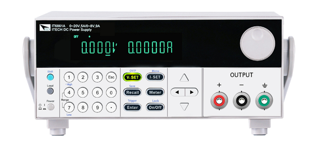 Beim programmierbarenDoppelbereichs-Gleichstromversorgung der Baureihe IT6800A/B verfügt jedeeinzelne Stromversorgung jeweils zwei Ausgabebereiche für Spannung und Strom. Ineinem Gerät steht somit die Funktionalität zweier Stromversorgungen zurVerfügung. Man spart auf diese Art und Weise Kosten und Einbauplatz.DieBaureihe besitzt eine hohe Auflösung von 1mV / 0,1mA und unterstützt dieLIST-Programmierung am Bedienfeld sowie Bedienung via Software am PC. Nichtzuletzt werden auch unterschiedliche Anforderungen an Kommunikation erfüllt.Die Baureihe eignet sich für Laborprüfung, Prüfung wärend der Produktion bzw.Prüfung bei Reparaturarbeiten usw.
